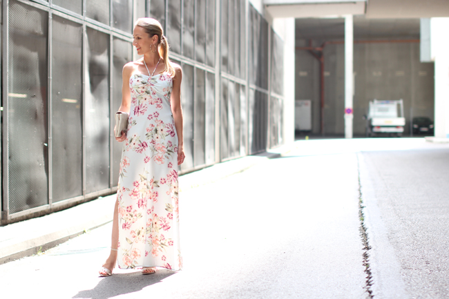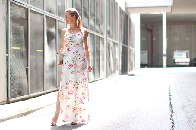 After showing you summer looks to topic "flowers" last week and my amazing evening gown for summer ball "Fête Imperial" this week, today I round off two summery, soft & floral weeks with this lovely summer dress. Cause hardly anything else spreads more summer or rather holiday mood than flattery dresses, naked shoulders, soft colors and flowers. Do you agree? - And what are your summer favorites or rather what brings you into summer holidays mood? And what do you think about my OOTD? Lots of question :-) ...dress - Zalando / high heels - Deichmann (sponsored) / clutch - Asos / earrings - from gold souk in Dubai